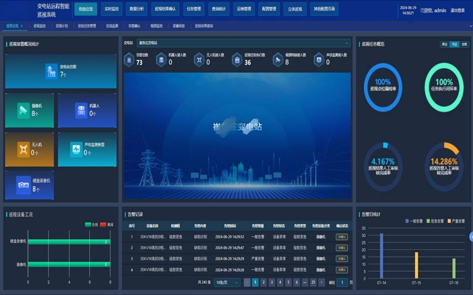 變電站遠程智能巡視系統(tǒng)通過巡視主機、智能分析主機,融合機器人、無人機、攝像機、聲紋監(jiān)測裝置等數據信號,具備數據采集、自動巡視、智能分析、實時監(jiān)控等功能,可實現站內設備狀態(tài)全面感知、倒閘操作一鍵順控、主輔智能聯(lián)動等功能,可有效提升電網運維智能決策能力。